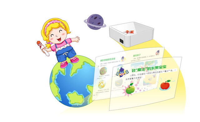 教材以有趣生动的动画形式,在连接机顶盒的电视屏幕上为孩子展示书本内容,如同打开新世界大门,让孩子 更加喜爱。